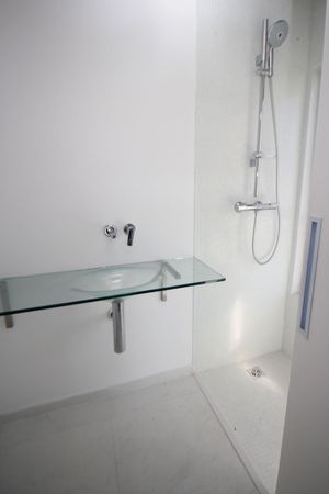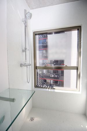 Banheiro com ventilação eficiente e moderna.