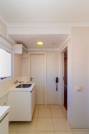 Área de serviço organizada com armários funcionais.
