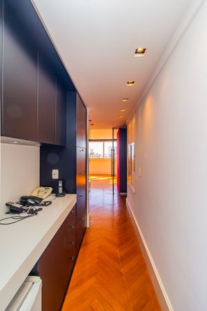 Organização completa com armários integrados na sala.